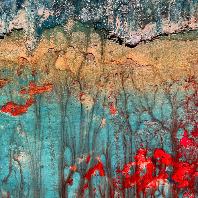 My paintings emerge from quiet observation: shifting skies, mineral surfaces, and the pulse of natural light. I work in layered oil, metal leaf, and textured mediums, building surfaces that feel both ancient and contemporary.